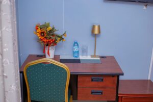 A work desk and strong Wi-Fi ideal for business stays.